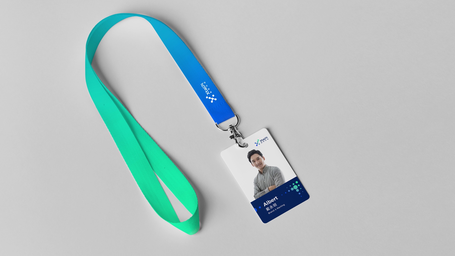在量子計算相關的視覺設計中,煥識延續晶泰科技原有品牌資產,基于Pi(π)所代表的技術探索精神,構建嚴謹的網格系統,將分子基礎圖形元素與流動的線條結合,既體現量子技術的精準與有序,又彰顯AI技術的靈動與智能,這一設計思路與量子計算logo設計的核心需求高度契合,讓抽象的量子技術變得可觸可感。在色彩搭配上,煥識保留品牌原有色相,提升色彩飽和度與亮度,將洋溢著生機和活力的綠賦予藥物發現,將嚴謹科學的藍賦予化學服務,藍色與綠色通過漸變的方式融合,既增強了視覺沖擊力,也反應出品牌面對未來創新的情緒,完美契合量子科技VI設計的行業特質。